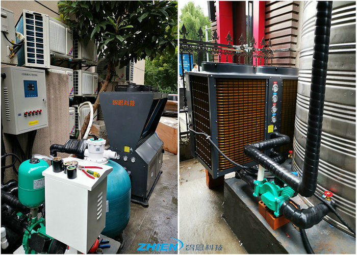 采用了91香蕉污视频下载大香蕉视频免费看热泵商用热水系统:浴池循环热水系统(大香蕉视频免费看热泵浴池循环机+热水循环泵)、大香蕉视频免费看热泵洗浴热水系统(大香蕉视频免费看热泵热水机+变频增压泵+保温水箱)
