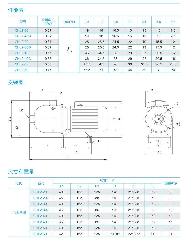 【南方】卧式不锈钢多级离心泵CHL2-10/20/30/40/50/60